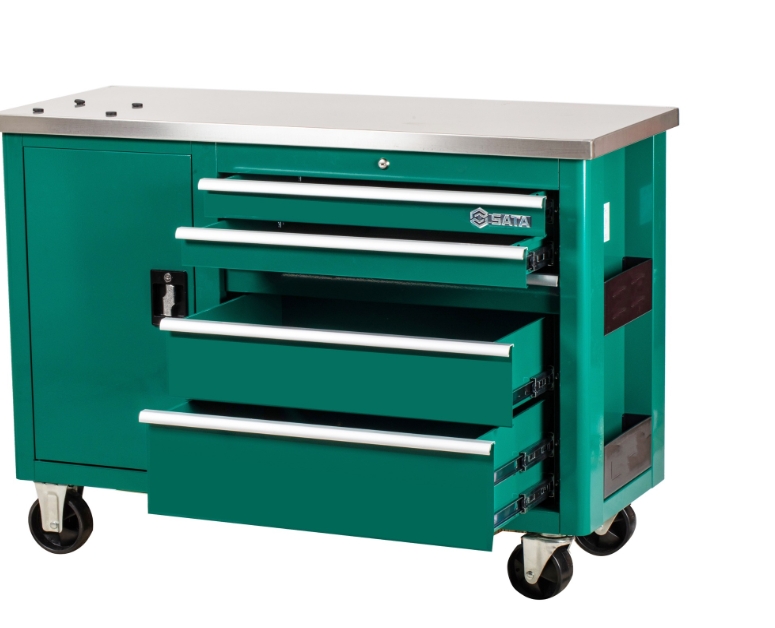 SATA 世達美國五金工具中的 95208 型號是一款五抽屜帶輪工具車,以下將從其尺寸重量、材質結構、內部設計等維度展開詳細介紹:
