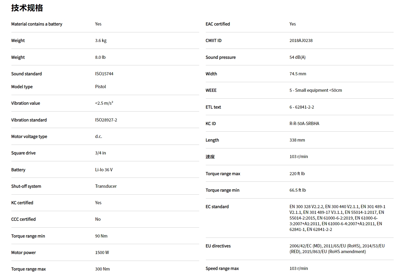 規格選項: