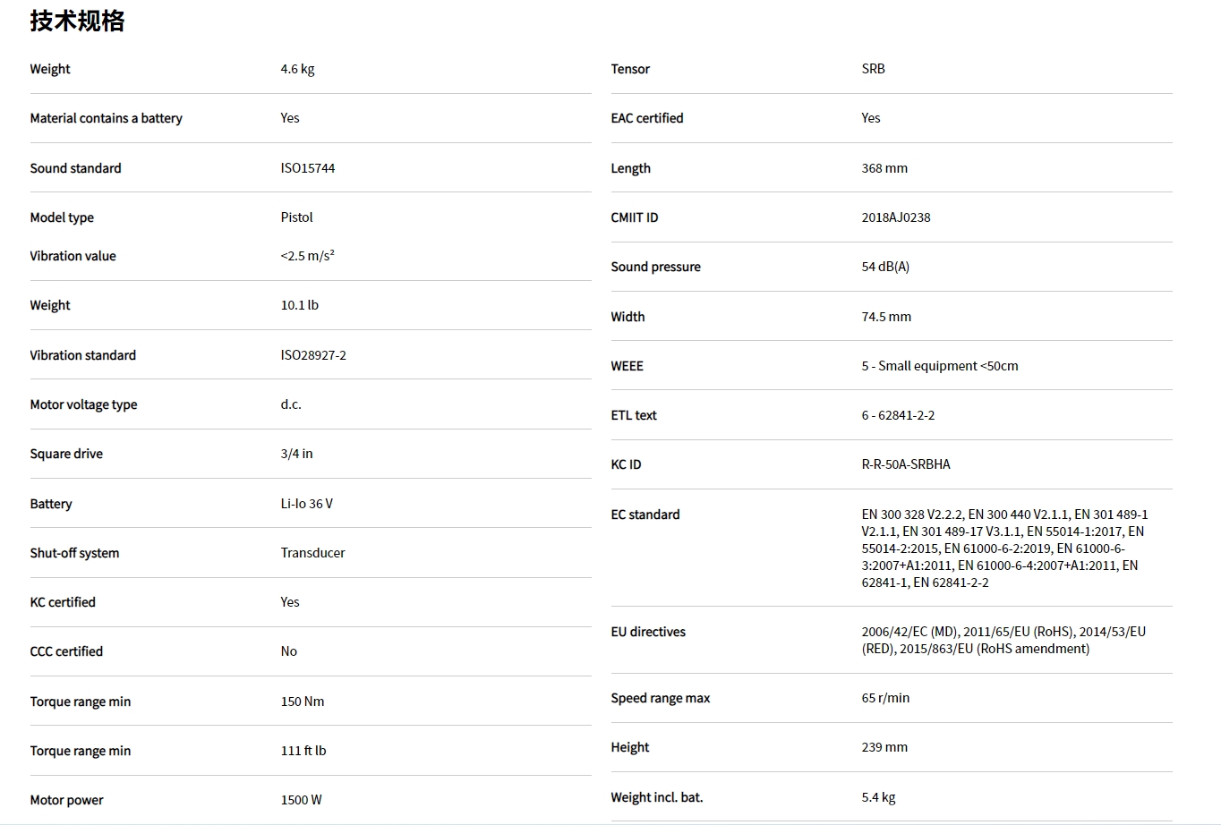 規格選項: